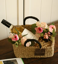 可憐で華やかなラナンキュラスのアレンジとDEAN&DELUCAのワインのセットをチョイス。